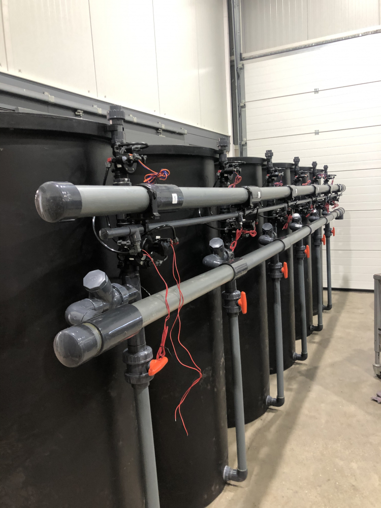 Een ontijzeringsinstallatie bestaat uit 12 ketels van elk 5 m3/h, en zo in totaal 60 m3/h.